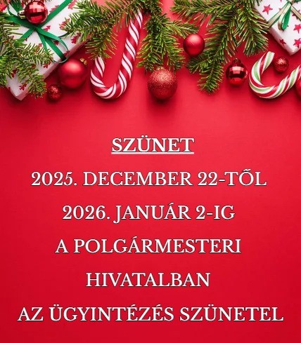 2025. December 22-től 2026. január 2-ig a Polgármesteri Hivatal zárva tart.